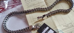 Полновесная цепочка.На фото изображена мужская серебряная цепочка массой 120 грамм с округлым замком "Коробочка". Изготовлена преимущественно не за счёт ручной работы, а с помощью литья и соответствующей дальнейшей обработки. Но тем не менее сложность её изготовления не становится легче, а профессионализмом в некоторых областях нужно обладать даже большим, чем при изготовлении цепочек из плетений полностью ручной работы.