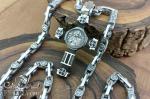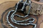 The chain is made of intricately shaped cast links with round medallions. The main accent is the two links with runes. The Algiz rune symbolizes protection and patronage. The Raido rune signifies the path, movement, and direction in life.