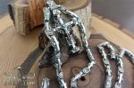 This set was custom-made for our client. It consists of a silver cross on a wooden base with enamel, as well as a cast chain with the Algiz and Raido runes, crafted in a unified brutalist style with blackening.