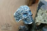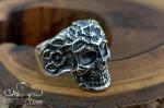 На фото зображено кільце зі срібла у вигляді черепа, прикрашеного квітковим орнаментом має унікальний дизайн, який привертає увагу та викликає інтерес. Воно стане відмінним доповненням до вашого стилю та дозволить виділитися серед інших.